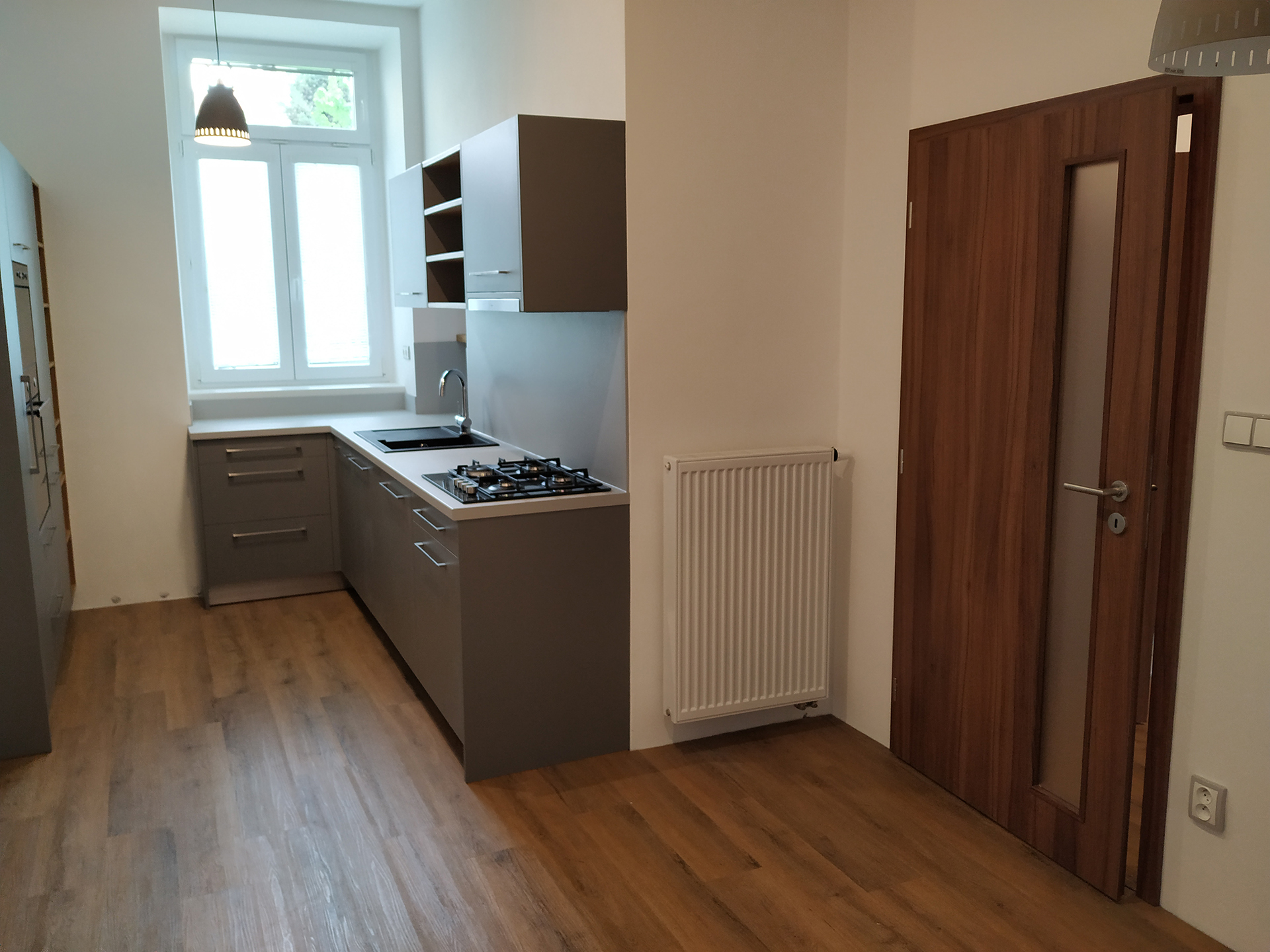 Byt je po generální rekonstrukci. Jsou zde nové rozvody elektřiny, plynu, vody, nové podlahy, omítky, dveře, koupelna, WC, kuchyňská linka vč. spotřebičů. K bytu náleží sklep. Parkování je možné na ulici před domem nebo v okolních ulicích.